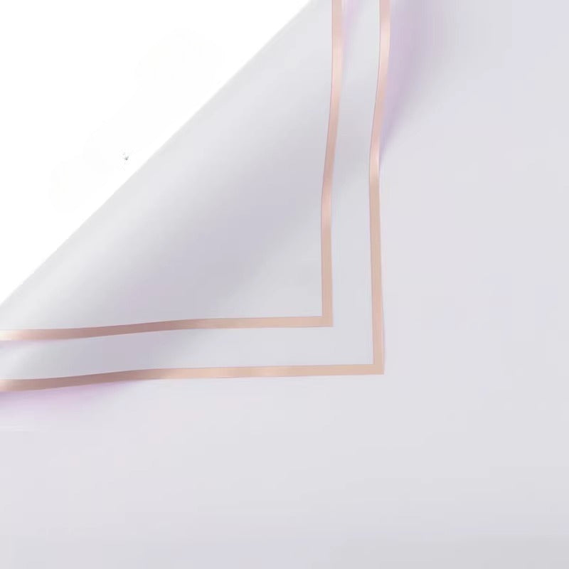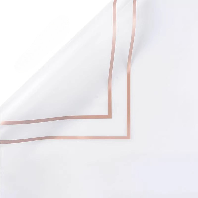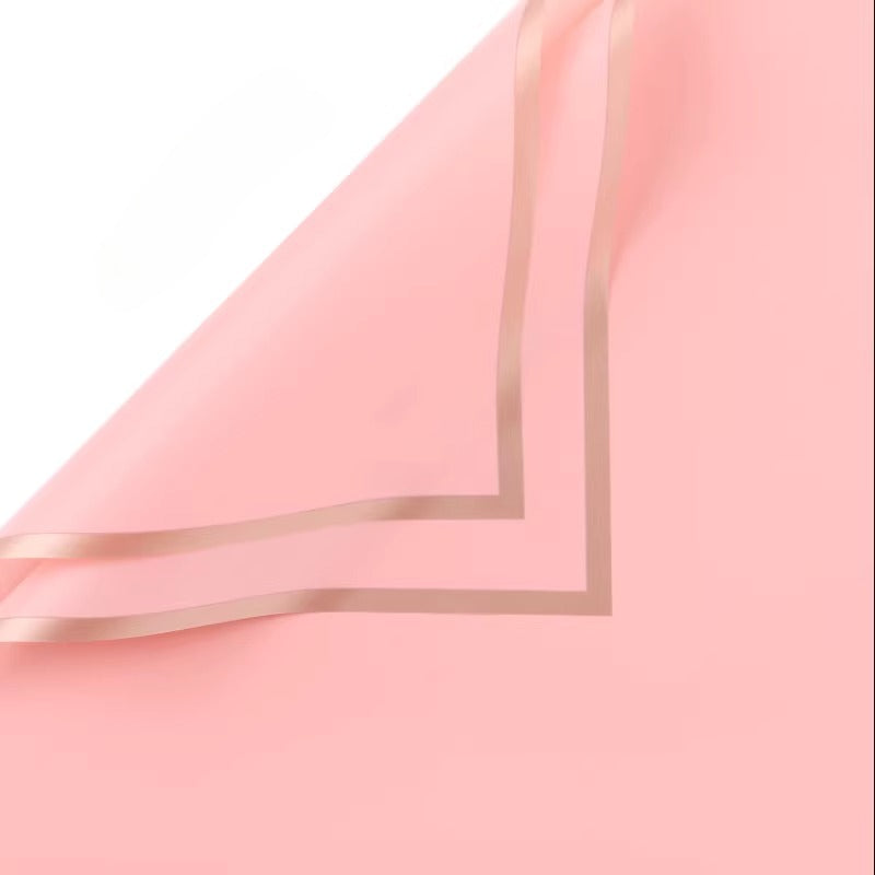 Elevate your floral creations with our premium gold-edge matte cellophane wrap, the go-to choice for florists and DIY enthusiasts. Crafted from durable, tear-resistant OPP material, this semi-transparent wrapping boasts a soft, frosted finish that beautifully complements any bouquet while keeping blooms securely protected. Each sheet features an elegant gold foil border that adds a touch of luxury and refinement, turning simple arrangements into eye-catching gifts.