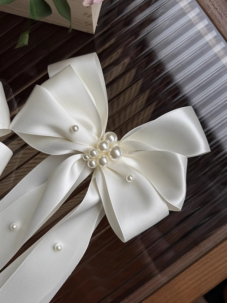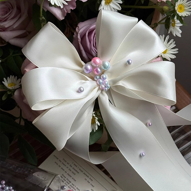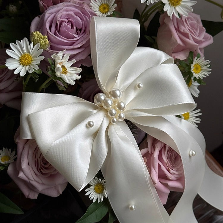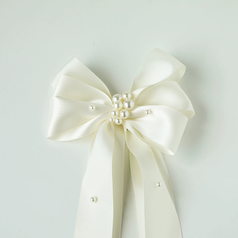 Ivory Satin Bow with Pearl Accents