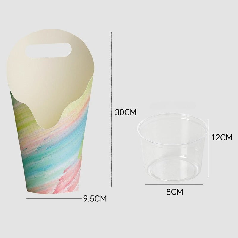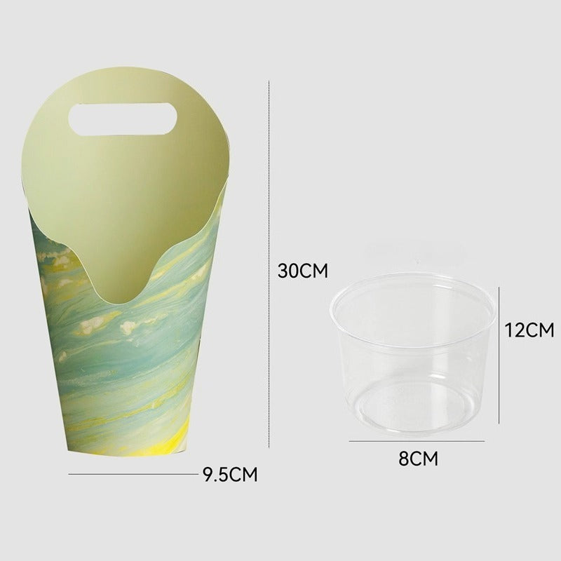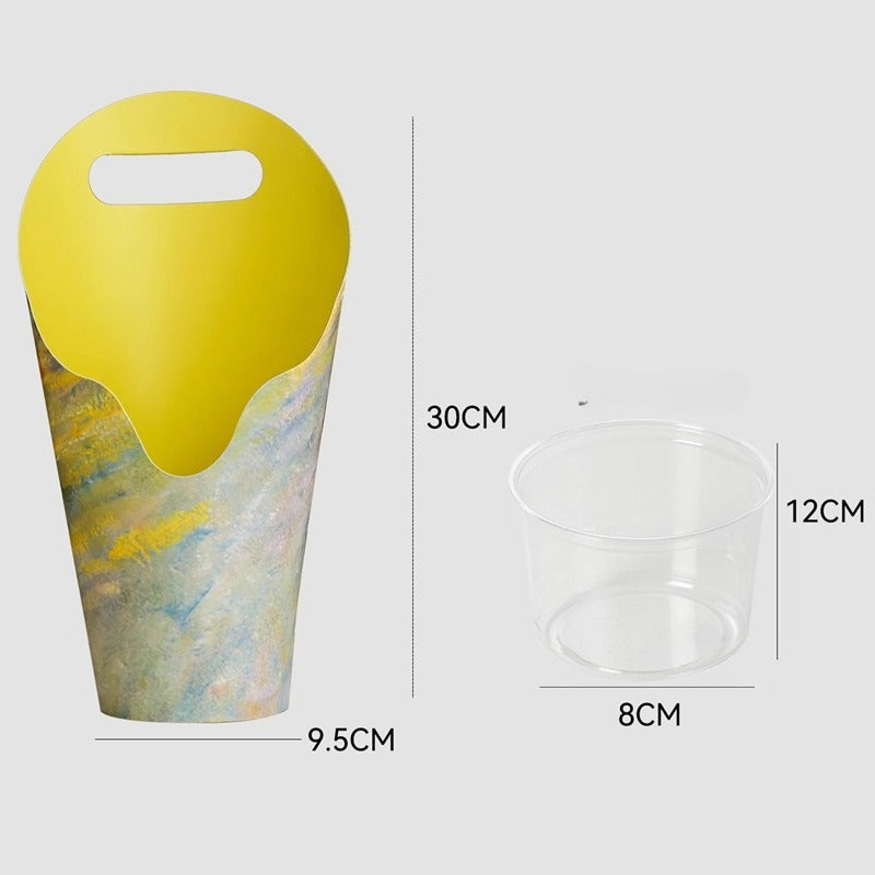Introducing our exquisite flower container, a perfect blend of elegance and practicality. This beautiful container features a plastic insert for wet floral foam, ensuring your flowers stay fresh longer. Its thoughtful handle design makes it easy to carry, making it ideal for flower arrangement workshops or special occasions. With vibrant patterns and colors, it elevates any floral display, adding a cheerful touch to your decor.