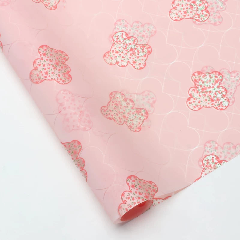 Elevate every bouquet with our cute bear-print cellophane paper — a chic twist on classic wrapping. This waterproof wrapping paper features playful bear outlines layered with delicate florals, available in multiple soft colors. The thick, matte finish adds a gift-ready elegance, turning simple blooms into a memorable, premium wrap for Valentine's Day, anniversaries, or birthdays.