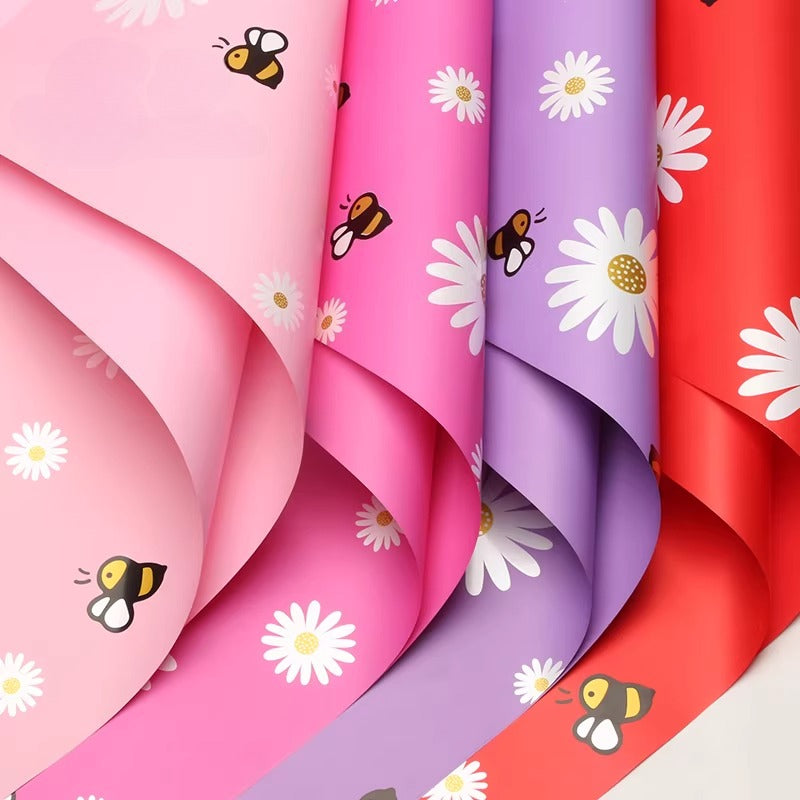 Brighten every bouquet with our daisy bee bouquet paper. This glossy, waterproof wrapper features cheerful daisies and playful bees, adding instant charm to any arrangement. Surface-coated for durability, it resists moisture while still showcasing vibrant colors. Perfect for wrapping flowers or gifts, it brings a whimsical, boutique vibe to celebrations.