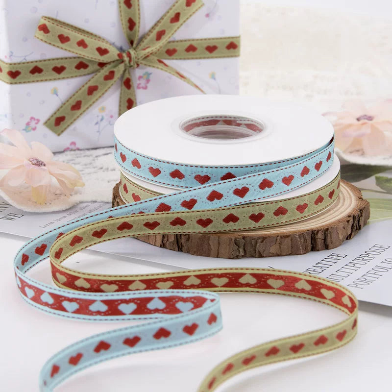 Double-sided Heart Ribbon for Valentine's Day (1cmx15Yd)
