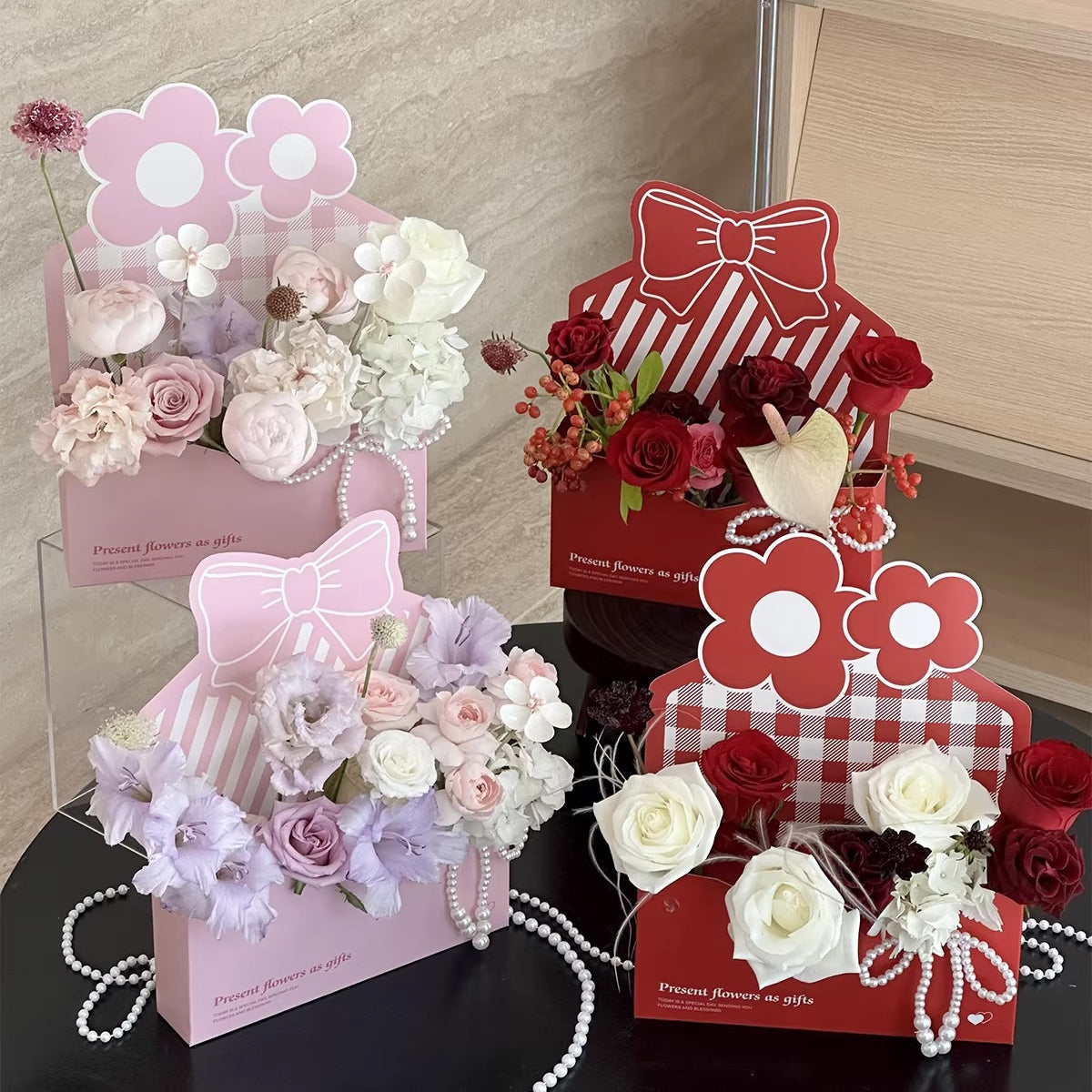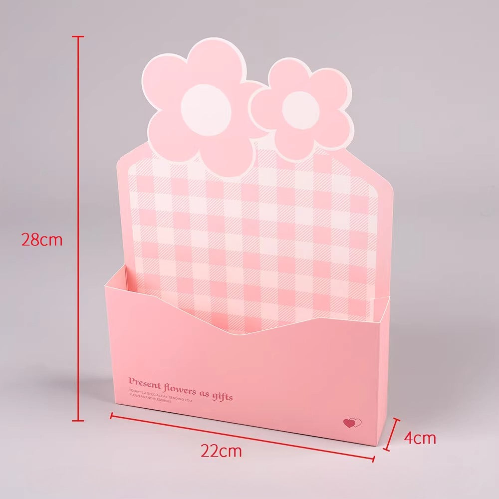 Our envelope floral box offers a chic and streamlined way to create stunning floral arrangements. The flat-pack design allows for easy storage and assembly: simply add a foam block and arrange. Ideal for festive occasions, unique floral designs, and home decor, these envelope-inspired boxes are available in plaid, stripes, and pastel tones, providing boutique-style presentation and effortless elegance.