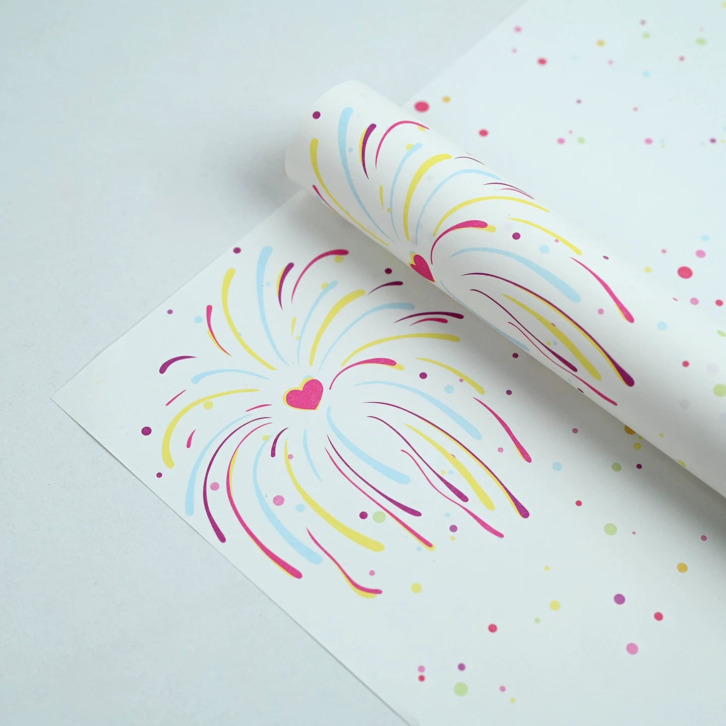 Elevate your floral designs with our fireworks print flower wrapping paper — a vibrant, eye-catching choice that turns every bouquet into a celebration. With a sophisticated matte finish, this wrapping paper features delicate heart-firework prints that capture the romance of a celebration. Choose from soft pink, vibrant red and clean white to instantly elevate your bouquets, adding a festive, joyful vibe perfect for birthdays, graduations, and anniversaries.