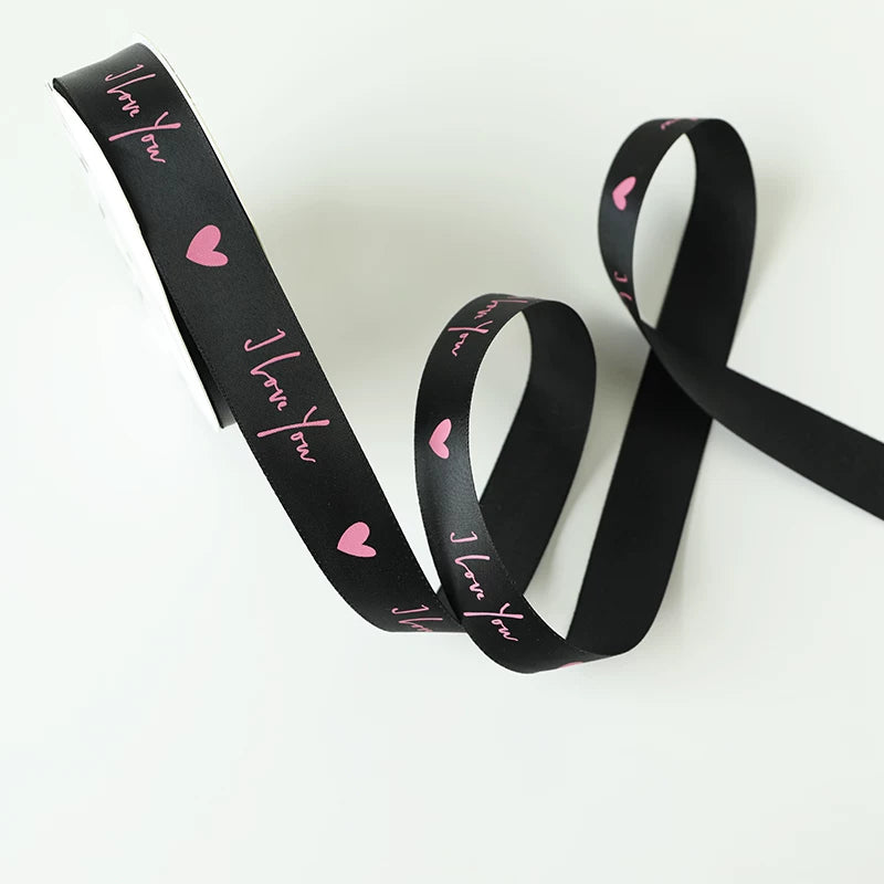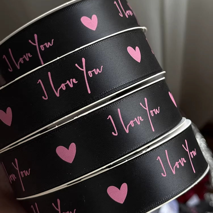 Elegant, cursive "I Love You" font paired with charming heart prints on four colorways. This ribbon elevates gifts, bouquets, and DIY decor—wrap a present, accent a centerpiece, or craft romantic accents for Valentine's Day. A soft satin finish adds a timeless touch of romance to any project.