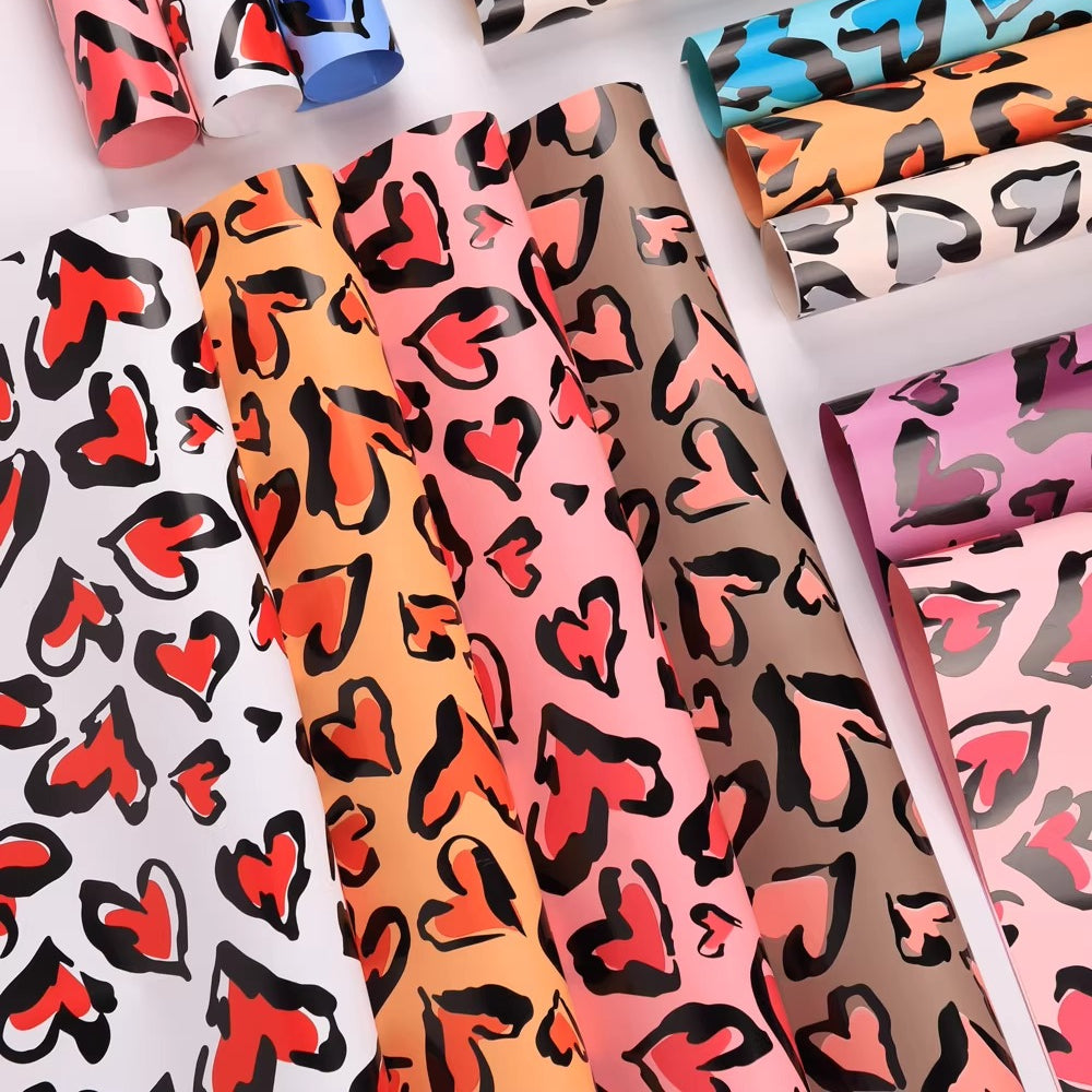 20pcs Leopard Heart Flower Wrap Paper (57x57cm)