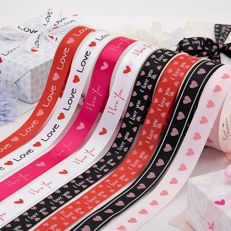 Elevate your Valentine's Day gifts with our ribbons. Our ribbons feature multiple styles—red, pink, white, black—with playful "Love" and heart motifs. Perfect for bouquet wrapping, gift embellishments, and DIY crafts, these ribbons add a romantic touch to every present.