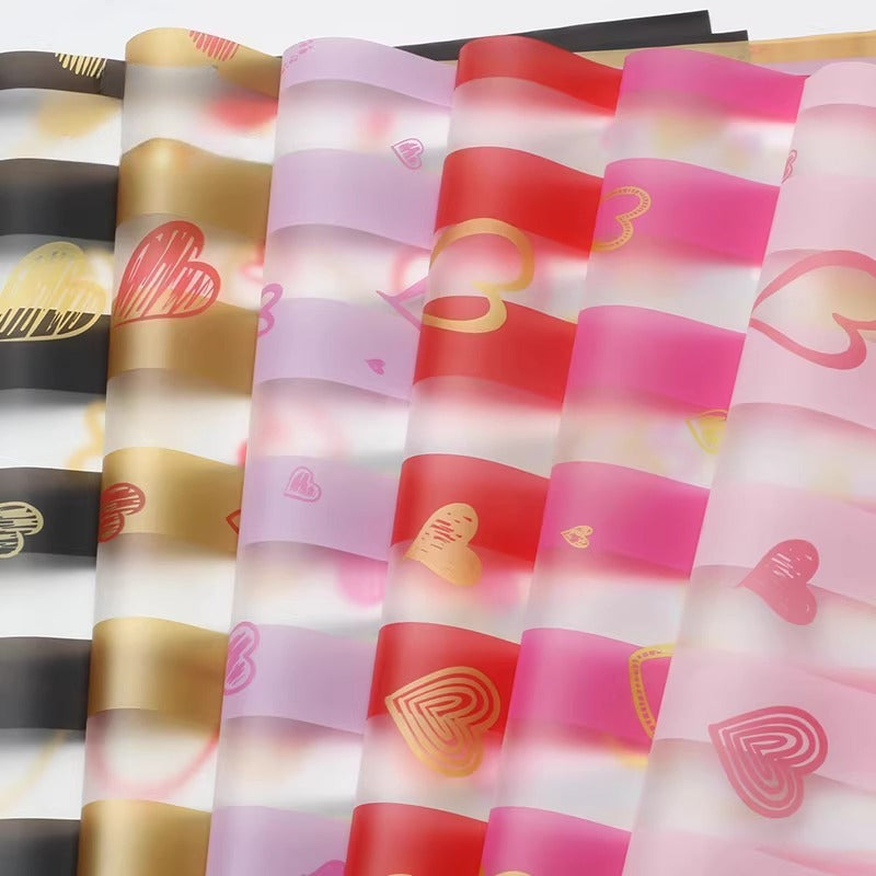 20pcs Stripe & Gold Heart Cellophane Wrap (57x57cm)