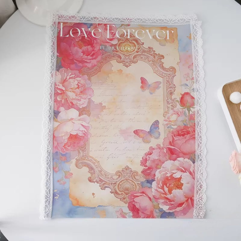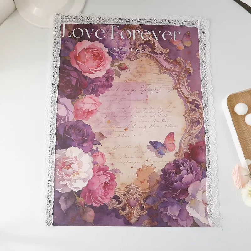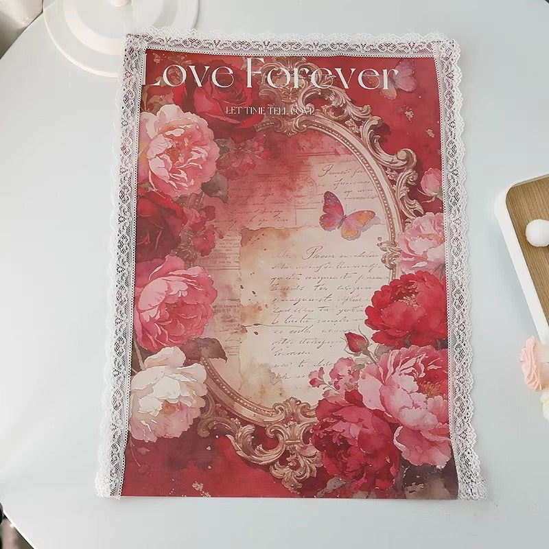 5pcs Vintage Lace-Trim Flower Wrap Paper (36x48cm)