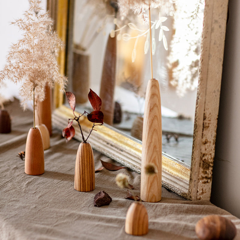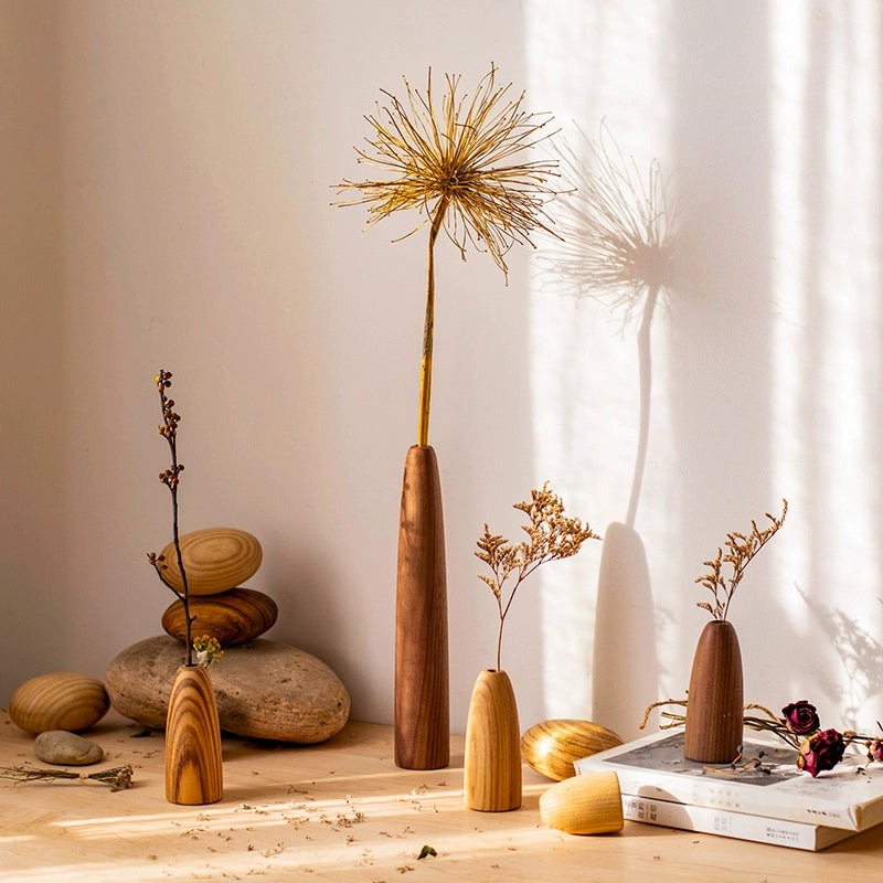 Crafted from natural solid wood, this eco-friendly decorative vase features a smooth, waxed surface with a subtle gloss. Perfect for dried or faux flowers, it can also be infused with essential oils for a fragrant aroma therapy experience or used as a fireless incense holder. Elegant and versatile, it enhances any home décor with a touch of nature.