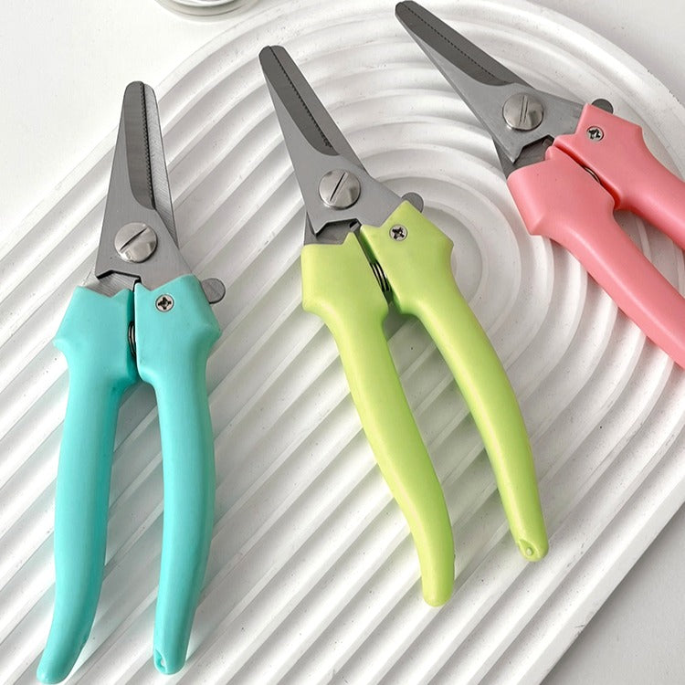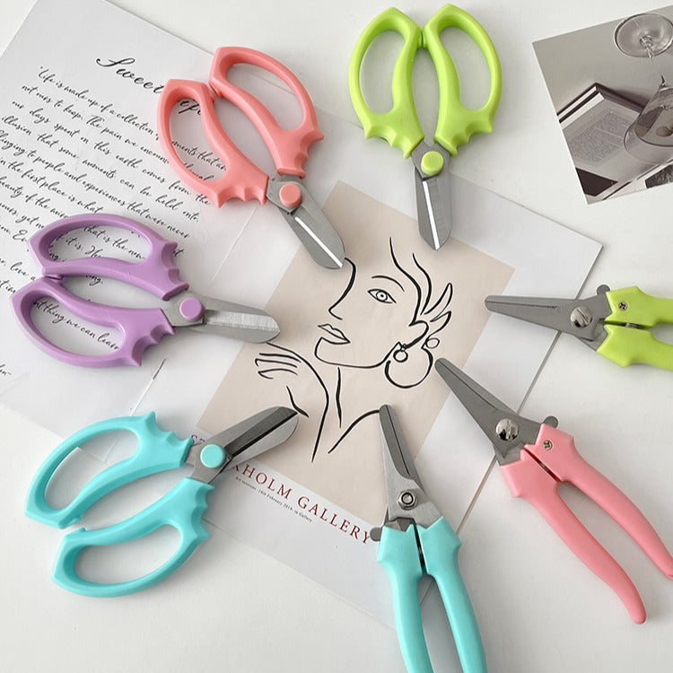 These ergonomic Florist Scissors feature soft-grip pastel handles for comfortable, fatigue-free cutting, while the sharp stainless-steel blades ensure clean, precise snips on stems, ribbons, and delicate petals. The modern, stylish design adds a pop of color to your workspace. Perfect for bouquets, wreaths, and DIY crafts, it combines functionality and aesthetics—a must-have for florists who value precision, comfort, and style!