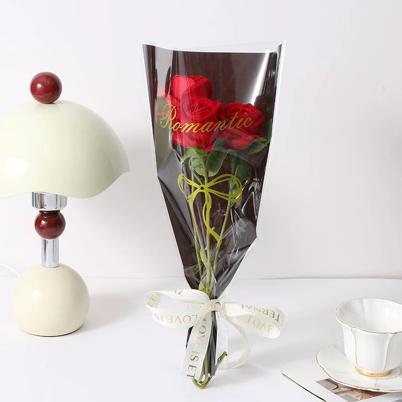 50pcs Gold Bow Print Bouquet Sleeves Bags