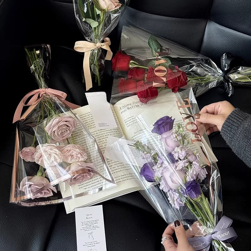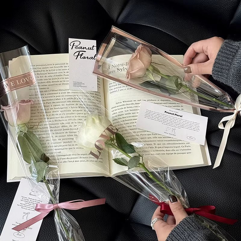 60pcs Gold LOVE Print Clear Flower Sleeves Bags