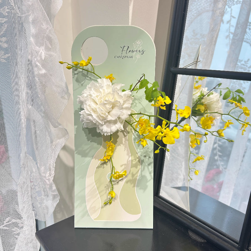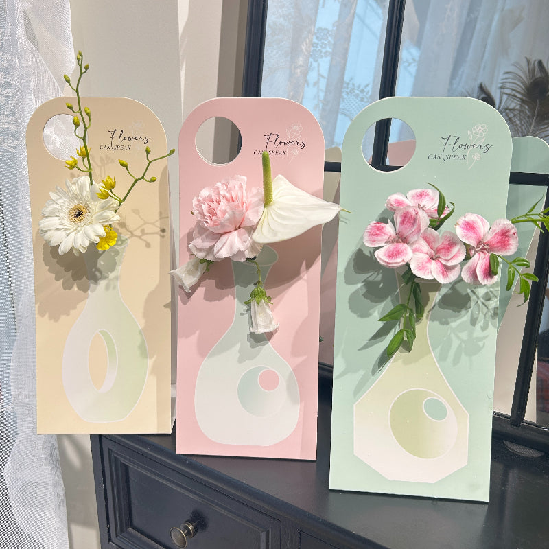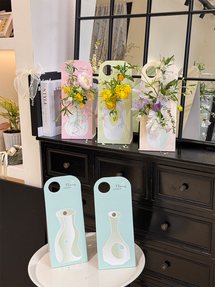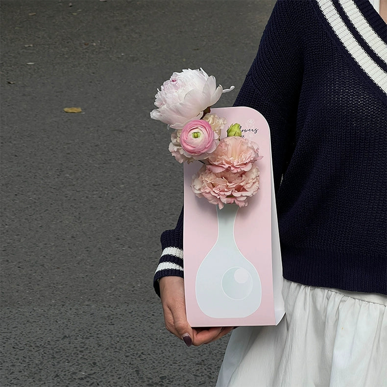 This innovative cardboard flower gift box features a charming vase illustration on the front, with a hole designed to fit flowers perfectly. The 3D flower effect, achieved by integrating real flowers with the printed design, creates a unique and eye-catching presentation. Ideal for various celebrations like Mother's Day, birthdays, or parties, turning simple bouquets into heartfelt gifts.