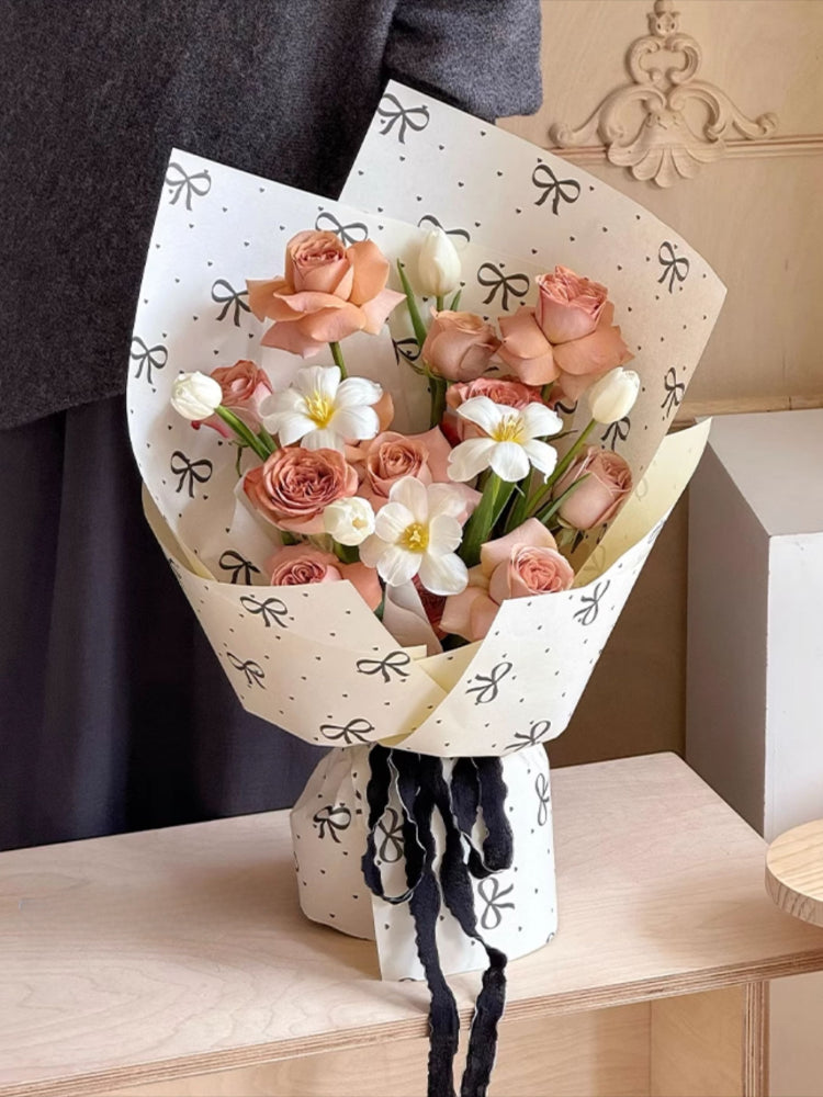 20pcs Romantic Bow Flower Wrapping Paper (35x50cm)