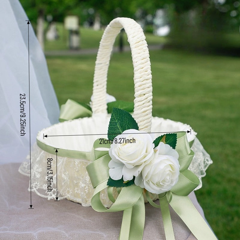 Wedding Flower Girl Basket with Flower Accents