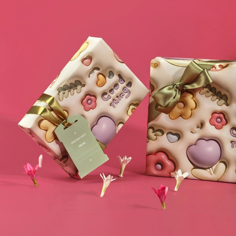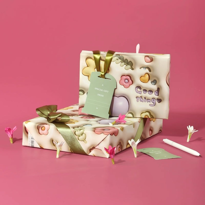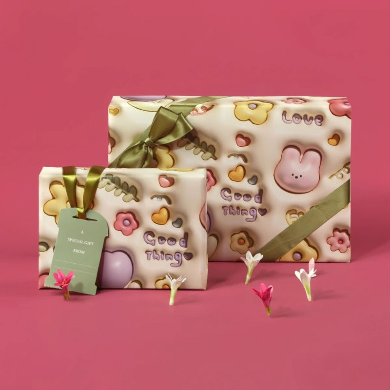 Beige 3D Cartoon Gift Wrap Paper (50x70cm) Pack 2