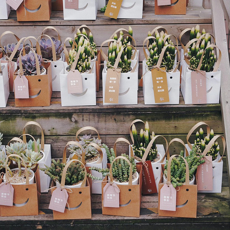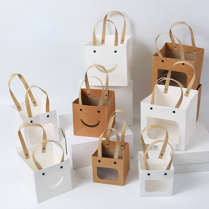 Introducing our super cute kraft paper bags with an adorable window design! Made from high-quality kraft paper, these sturdy bags are perfect for carrying small bouquets or succulent pots. They function not only as charming flower and gift arrangement boxes but also as creative containers for florist crafts. Each package includes a bulk quantity of 12 bags, making them ideal for any crafting project or event. Bring joy and style to your floral gifts with these delightful bags!