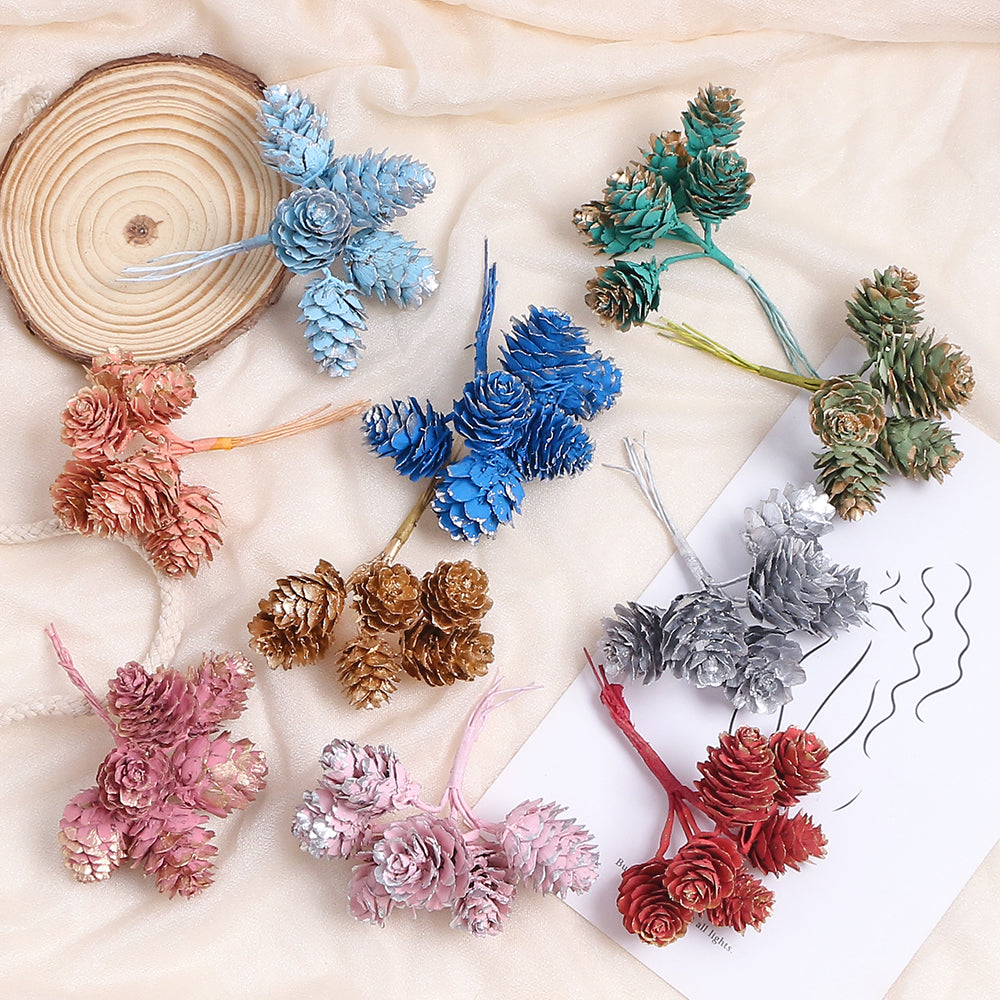 18pcs Artificial Pine Cone on Wire for Christmas Crafts