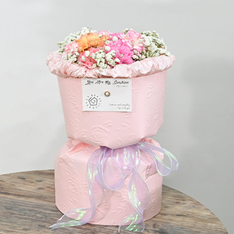Discover the tactile beauty of our bouquet wrap paper, featuring a peony flower embossed pattern on each sheet. Perfect for wrapping stunning bouquets, this waterproof paper ensures your flowers remain fresh and stylish. Ideal for florists, the array of selectable colors provides coordination options for diverse bouquets, adding a personalized touch.