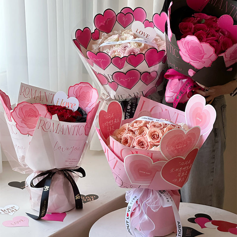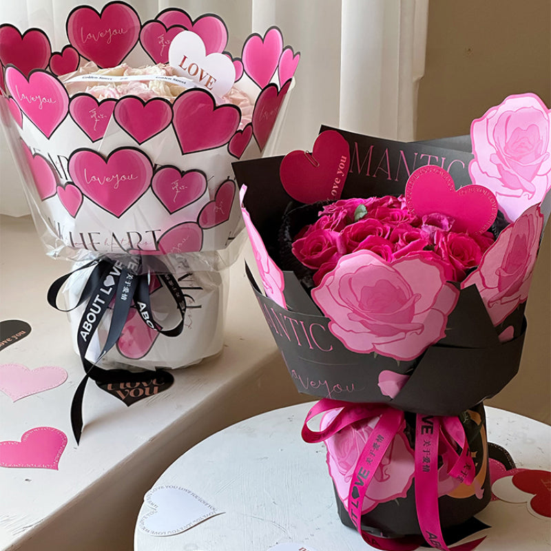 3D Heart Rose Bouquet Wrap Paper Pack 20 (35x50cm)