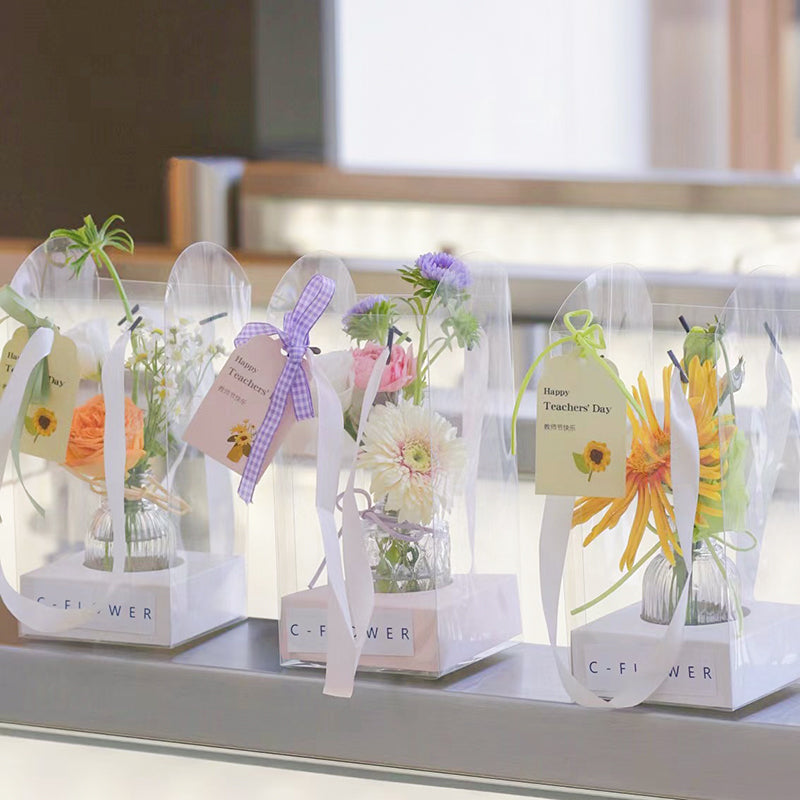 5pcs Square PVC Transparent Flowers Gift Boxes