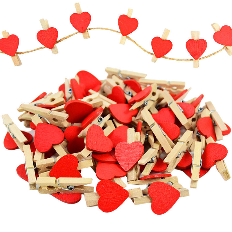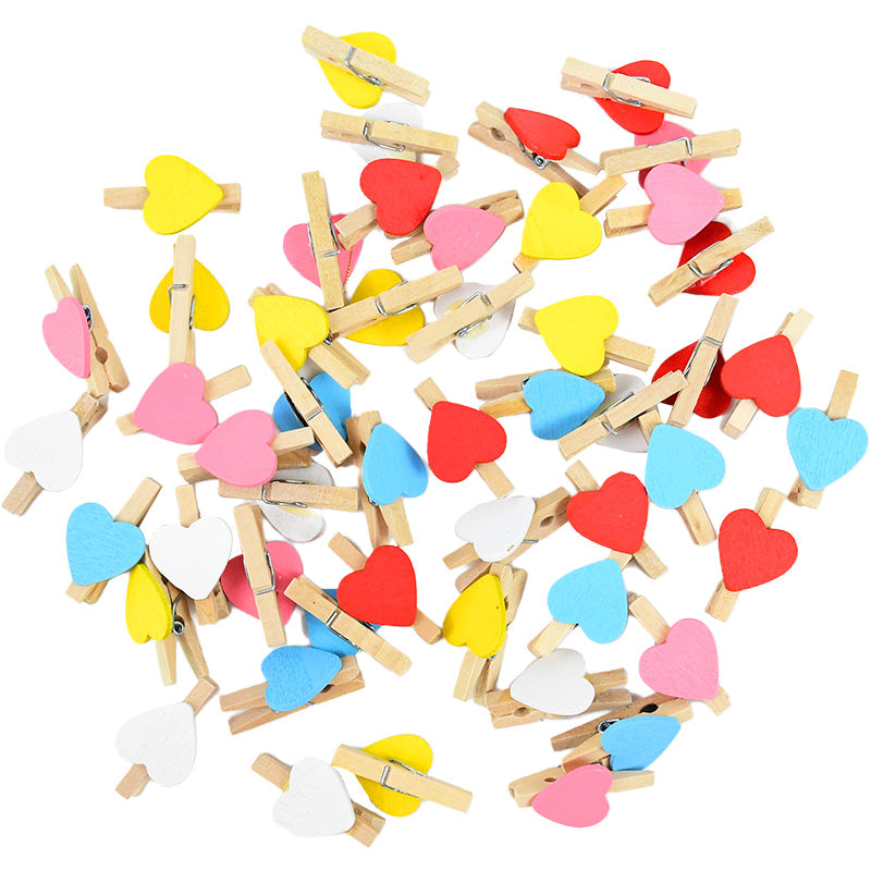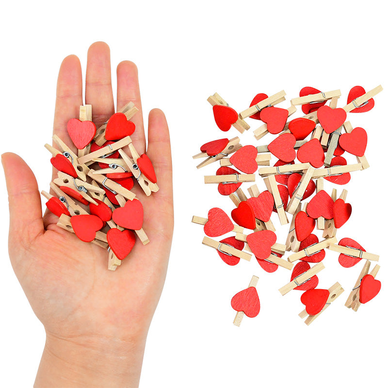 50PCS Mini Wooden Heart-Shaped Craft Clips