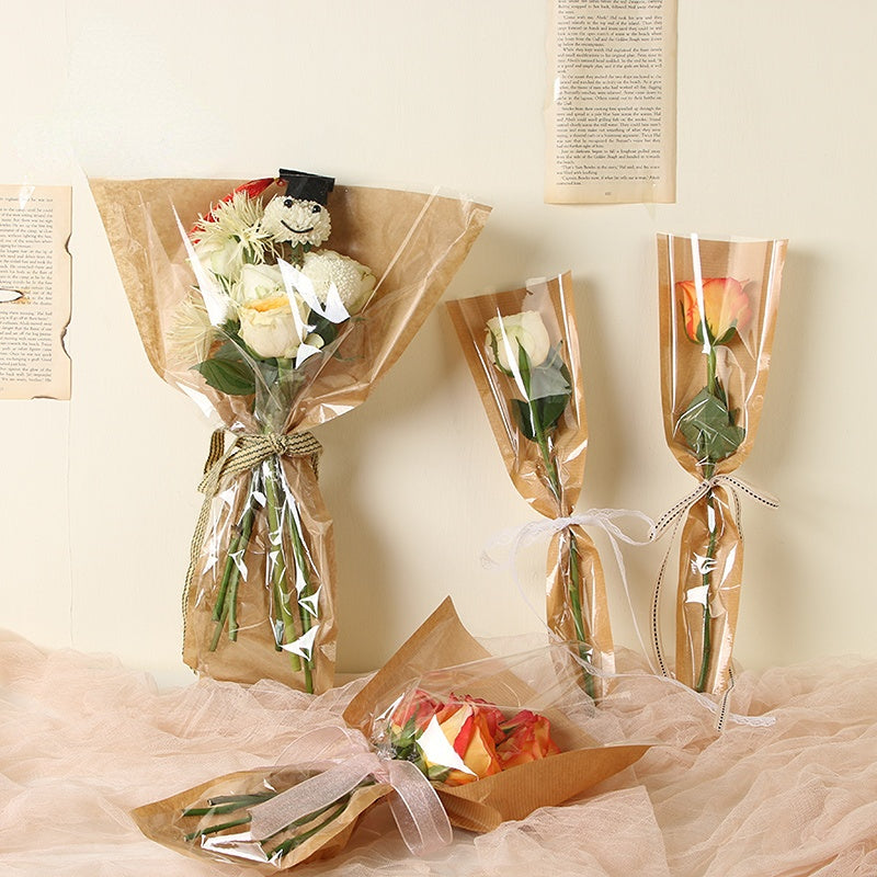 Elevate your floral arrangements with our Perfect Plastic Bags, ideal for flower shops and special occasions. Available in Small, Medium, and Large, these bags combine clear plastic for viewing your flowers with kraft paper for an elegant touch. Perfect for birthdays, Mother's Day, anniversaries, and holidays, they enhance any floral gift.