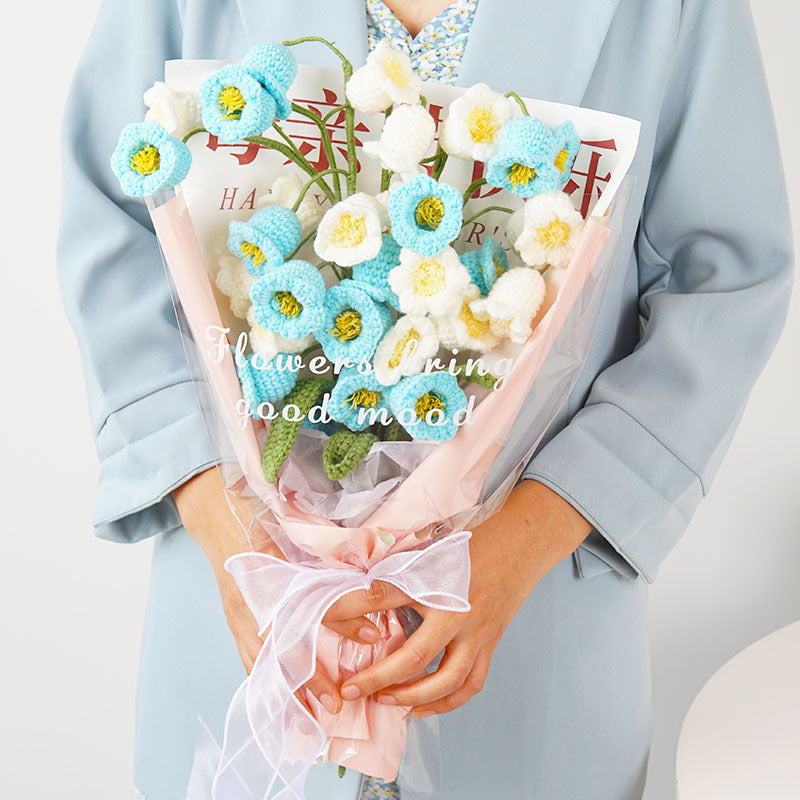 5pcs Finished Crochet Lily of The Valley Bouquet Yarn Knitting Artificial Flower
