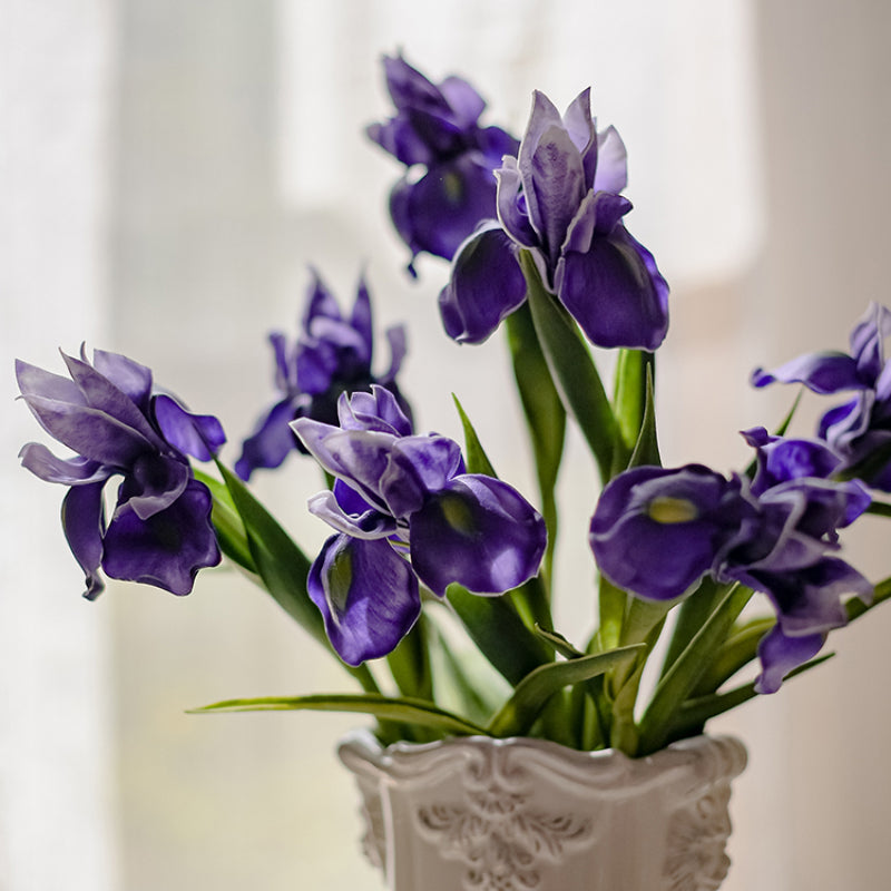 Introducing our stunning artificial Iris flower, a captivating piece of home decor that will add an enchanting touch to any space. Whether you place it on a mantel, a side table, or as a centerpiece, this fake Iris flower will elevate the ambiance of any room. Its vibrant colors and lifelike features will bring a touch of nature indoors, creating a serene and inviting atmosphere.