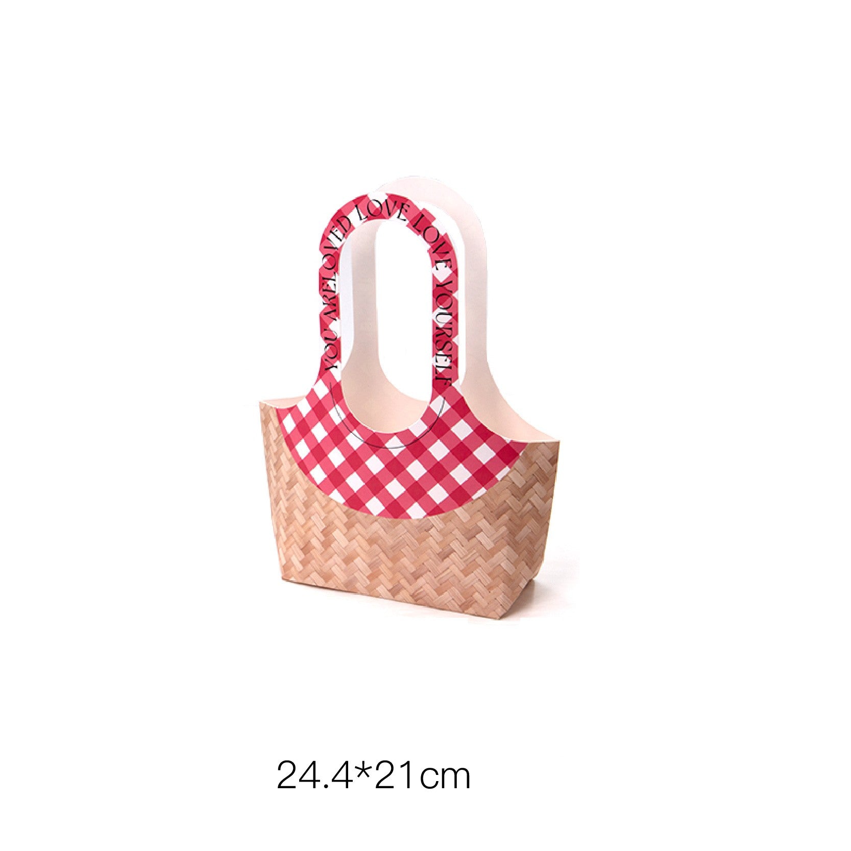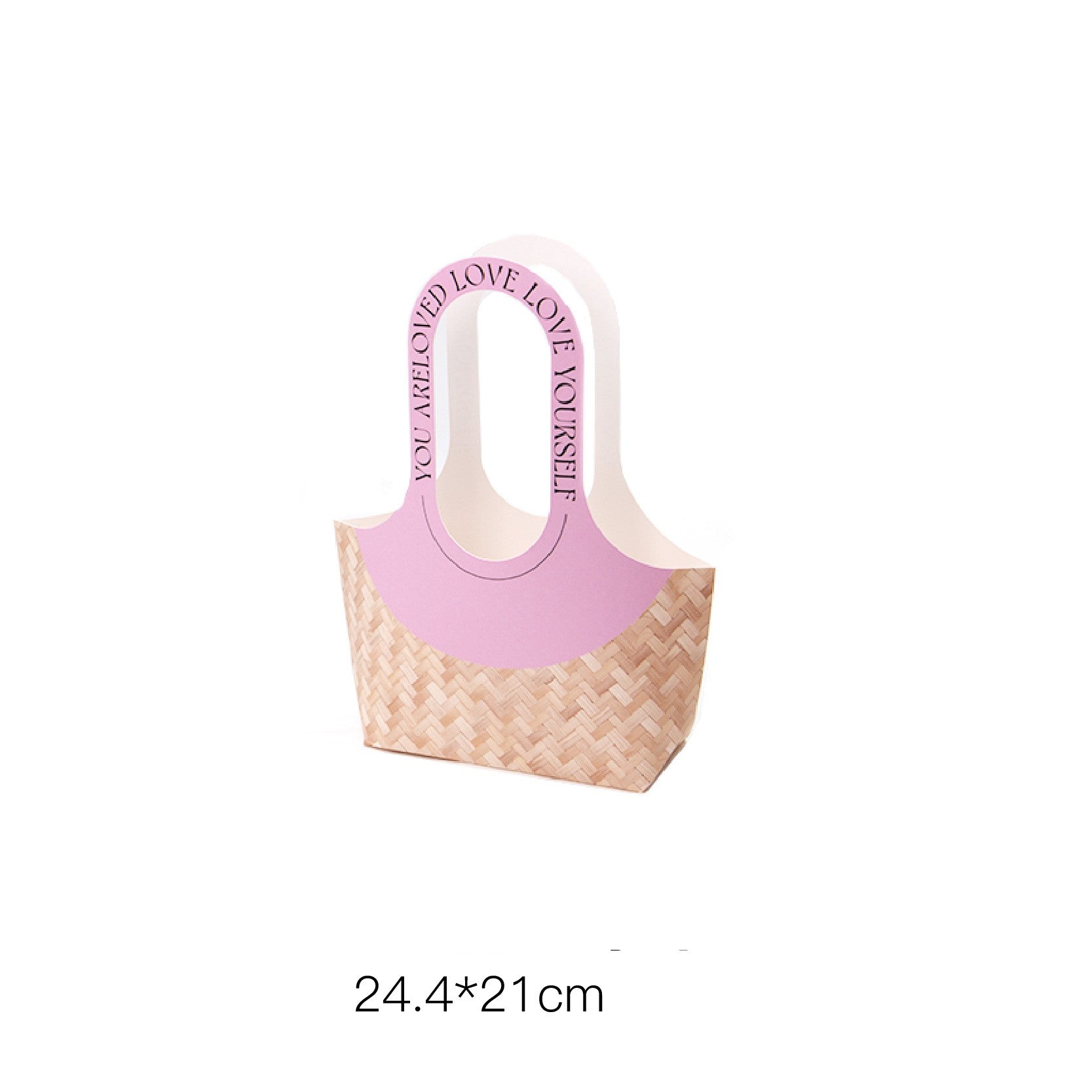 Elevate your floral arrangements with our faux wicker floral gift box! Crafted from durable paper with a charming faux wicker pattern, this stylish box combines vintage charm with modern convenience. Its easy-to-hold handles make it perfect for on-the-go floral designs, whether for workshops, events, or personal use. Simply add floral foam, unleash your creativity, and bring your unique flower arrangements to life.