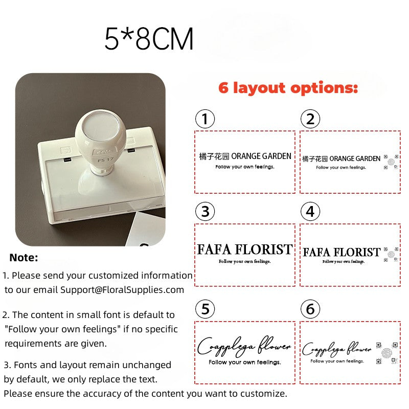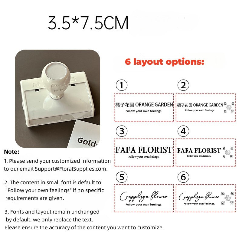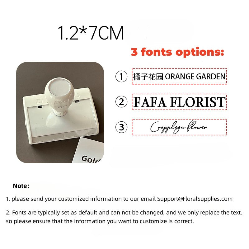 Elevate your flower business with our custom self-inking logo stamp, designed for effortless branding on packaging and promotional materials. Crafted for precision, this stamp delivers crisp, clear impressions every time, thanks to its built-in ink pad that eliminates the need for separate ink sources. Save time and add a professional touch to your floral arrangements, gift wrapping, and branded items, ensuring your logo leaves a lasting impression on customers with every use.