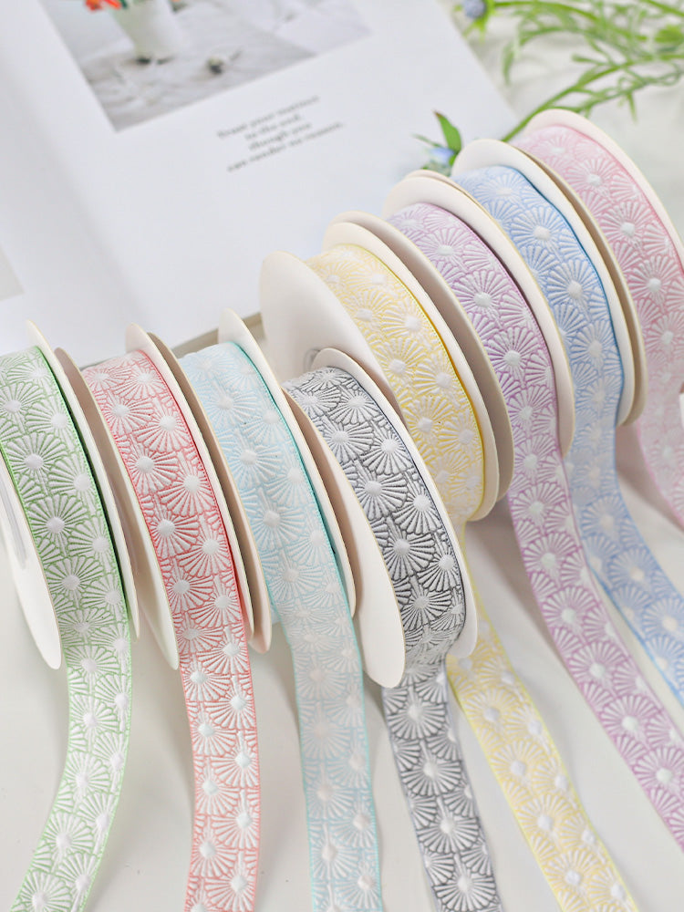Embossed Double Face Floral Ribbon (25mmx10Yd)