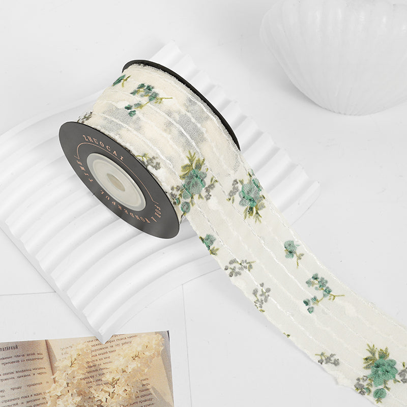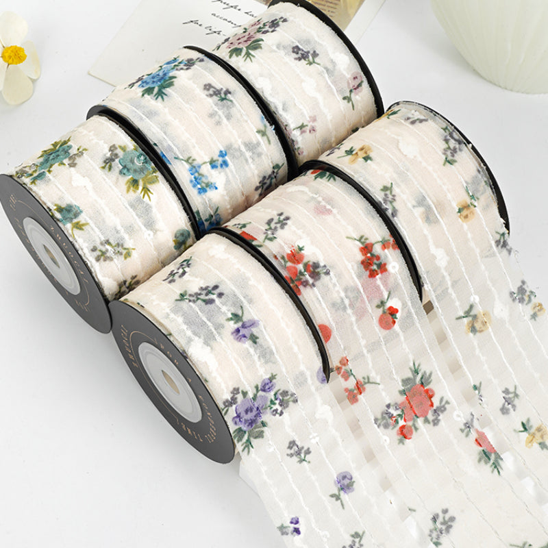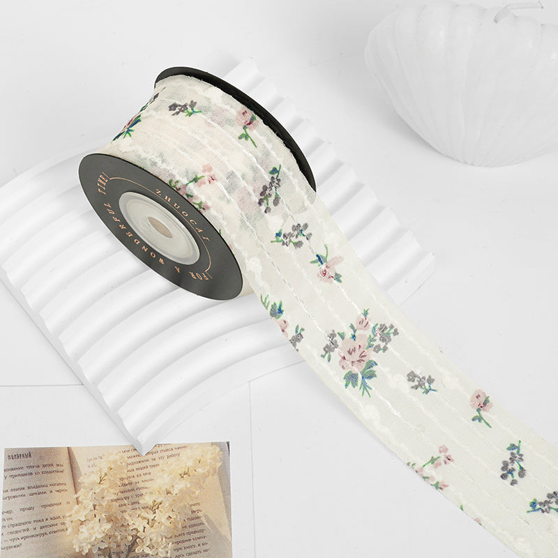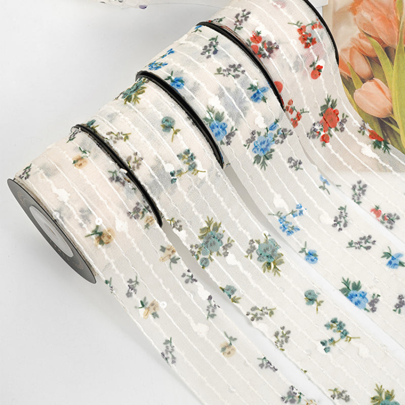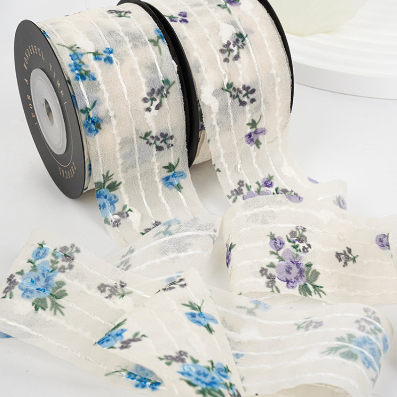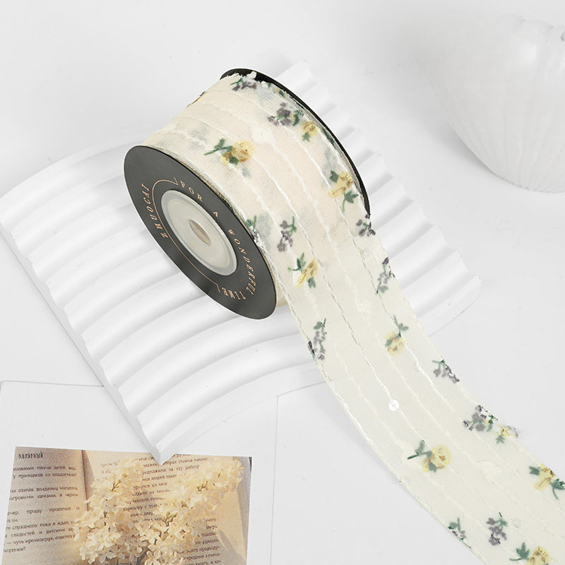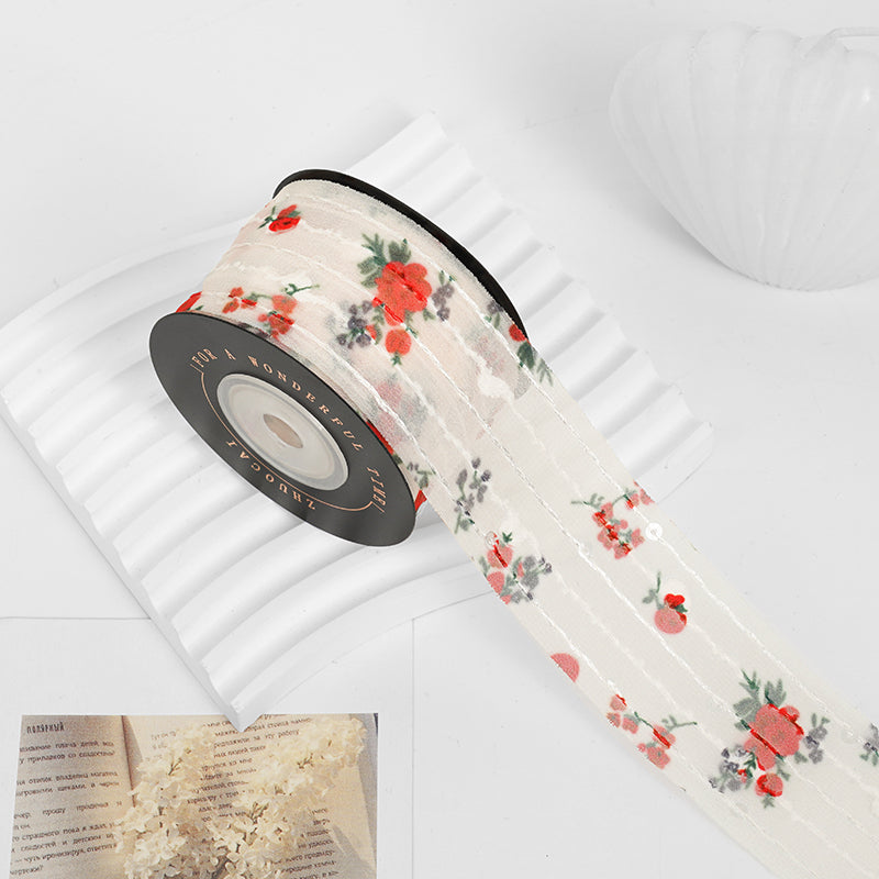 Floral Stripe Beige Sheer Chiffon Ribbon (40mmx10Yd)