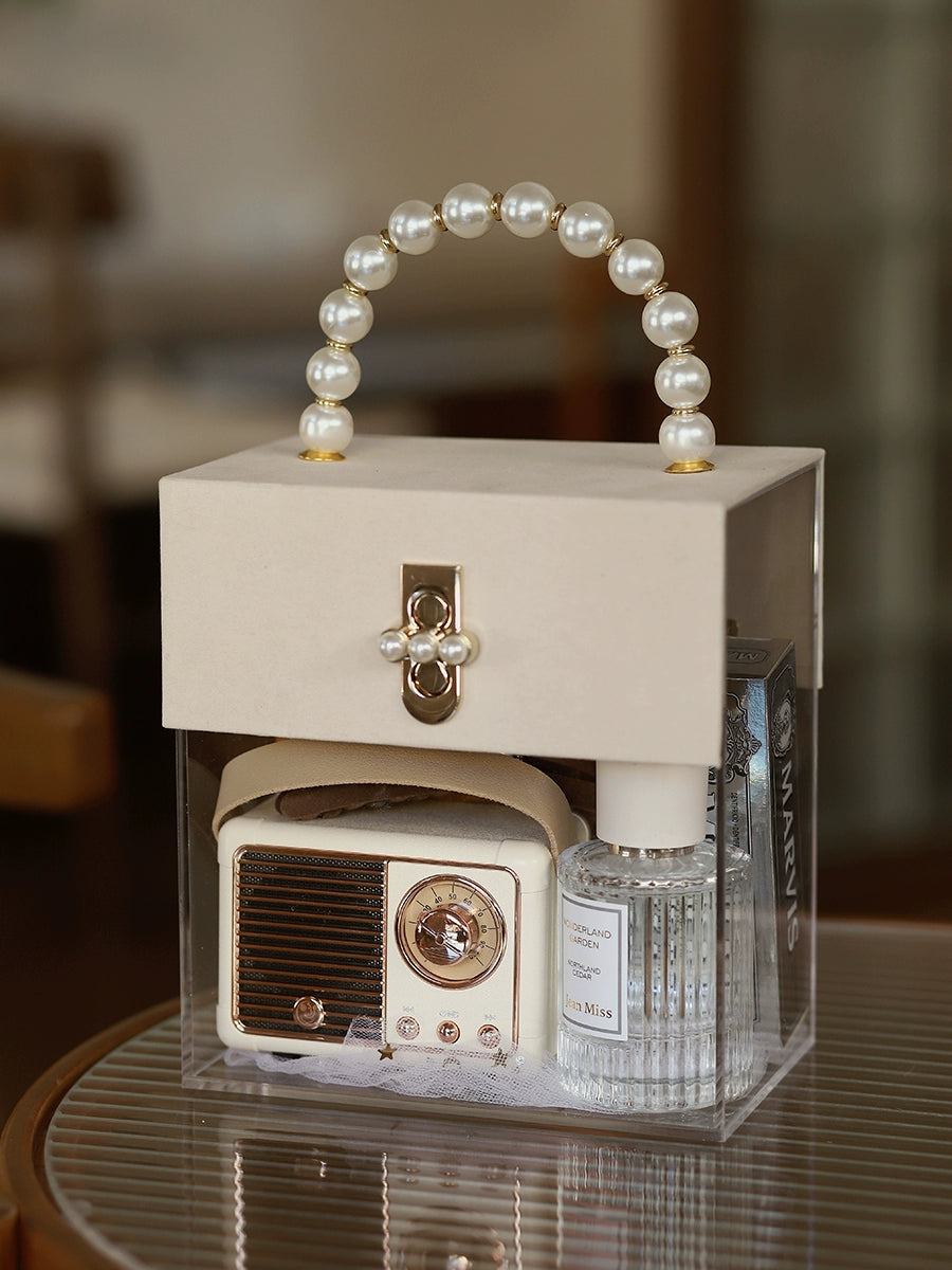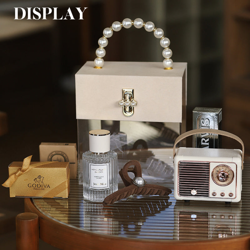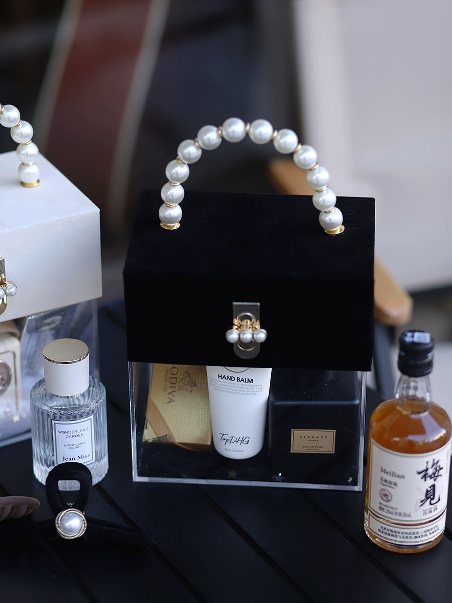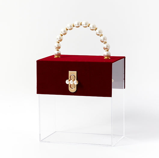 Luxury Velvet Acrylic Gift Box with Pearl Handle