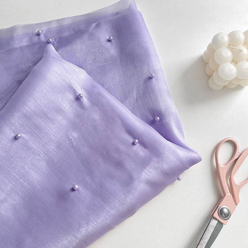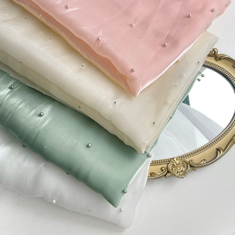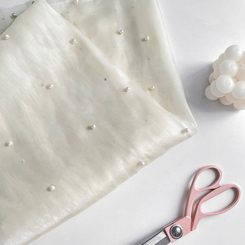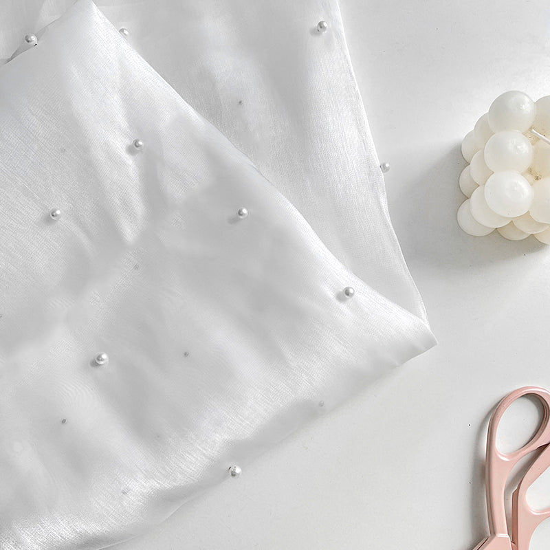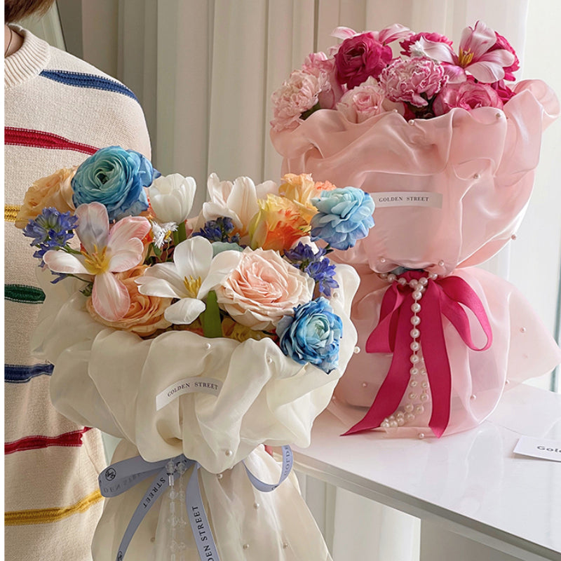 Pearl Beaded Organza Fabric for Bouquet Gift Wrapping (145x100cm)
