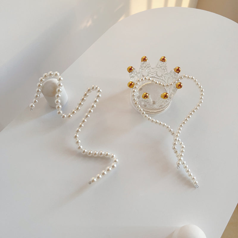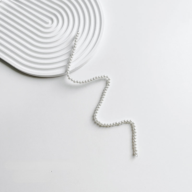 This pearl chain, made of faux pearls and wire, is flexible and can be shaped as desired. It adds elegant detail to bouquets and gift wrapping. The pearls measure 6mm, and the chain is approximately 39cm long. The package includes 10 pearl chains.
