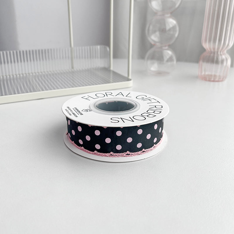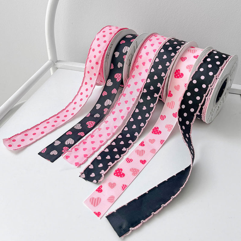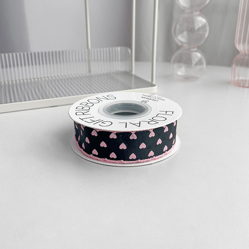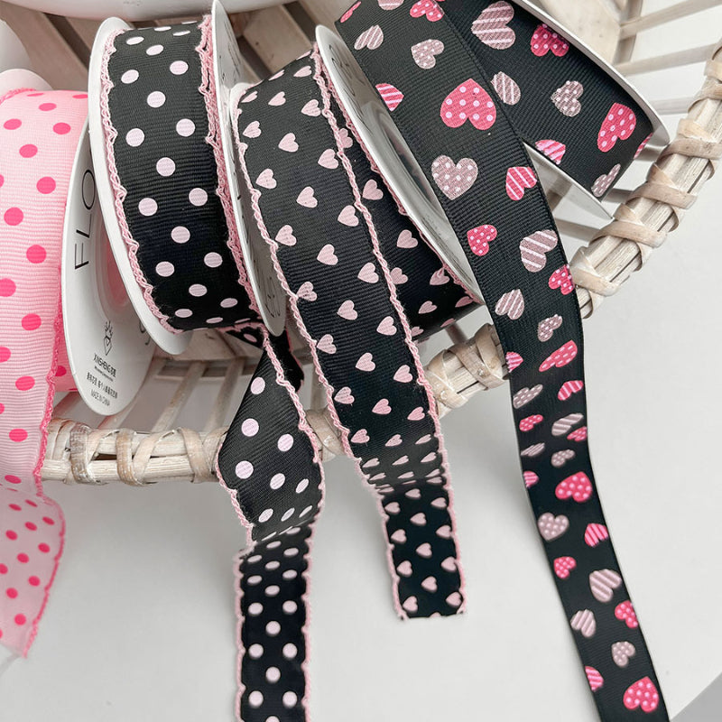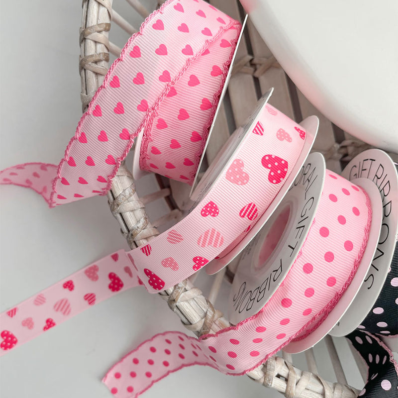 Polka Dot Heart Grosgrain Ribbon (25mmx10Yd)