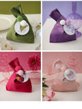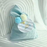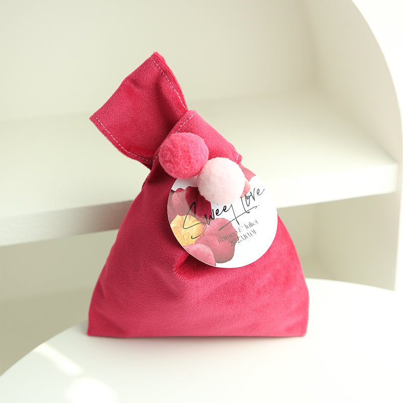 Introducing our reusable velvet gift bag, designed to add a touch of elegance to any occasion. This bag features both a long and a short handle for versatile carrying options. Simply thread the long handle through the short one and pull it out to create a stylish arm accessory. Complete with a Pom-pom accents, this velvet bag is perfect for storing candies, chocolates, and other small gifts. Whether it's a festive party, wedding, or any special event, this gift bag is a delightful token to present to your guests.
