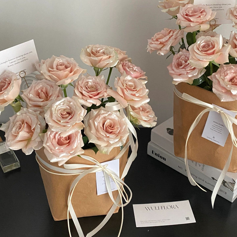 Made from high-quality waterproof material, this kraft paper bag is not only incredibly durable but also resistant to tearing. It is specifically designed for flower arrangements, serving as a unique and contemporary container for your blooms. To arrange your flowers effortlessly, simply place a piece of wet floral foam as a base. It can also be used as a convenient organizer. From small accessories to everyday essentials, this kraft paper bag is a practical and stylish addition to your home.