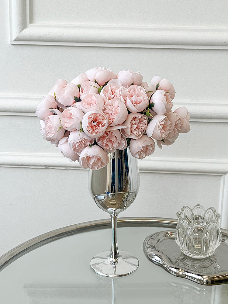 Wine Glass Silver Vase with Artificial Peony Bouquet